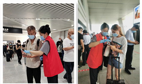 志愿者培训一经结束,李璇同学就迫不及待地披上“战甲”前往抗疫一线。8月10日至8月22日,她每天工作长达十三个小时,根据列车的发车和到站时间,李璇同学与志愿者小伙伴们做指引疏导工作。当遇到不认识字的旅客时,她耐心地一步步引导他们完成查询和核验;当旅客无法出示健康码时,她用自己的手机帮助旅客通过核验;当旅客拿不动行李时,她主动帮他们分担重量。李璇同学本着志愿服务的宗旨照顾到每一位旅客,为他们解忧,替他们分担。
