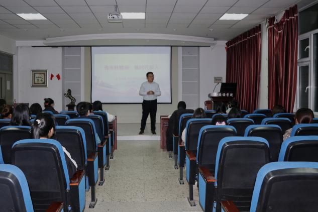 课堂上,袁野老师为现场同学们简要介绍了东林70年发展奋斗的历史,讲述了学校发展建设过程中的4件大事:更名“东北林业大学”;自筹经费建设“211”;争进教育部;成为“双一流”建设高校。
